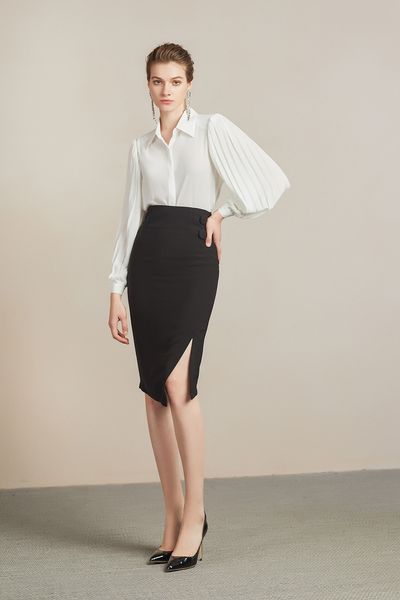 I travel a lot for work, and this blouse is a lifesaver. It folds up well, and the material doesn’t wrinkle as much as other white blouses.