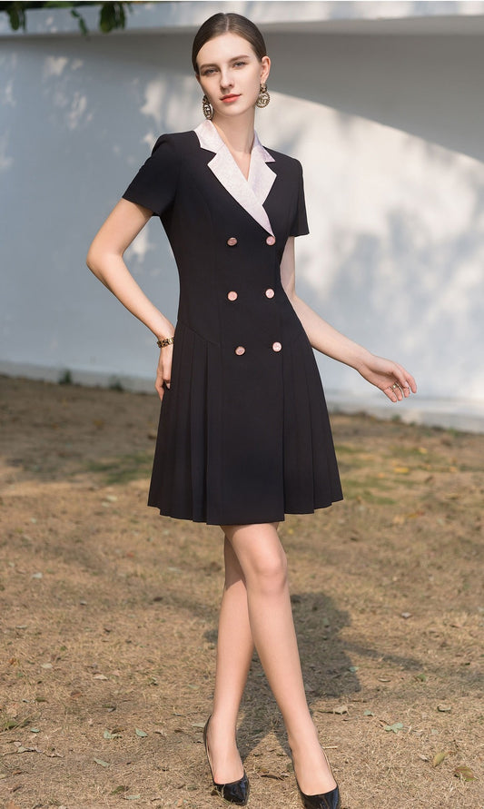 Every detail is perfection. From the gold buttons to the sharp lapels, everything about this dress screams high-end fashion. An absolute must-have!