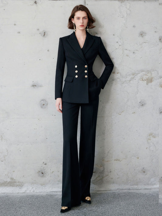 Élise Noir Power Suit Set – Premium Double-Breasted Blazer & Tailored Pants