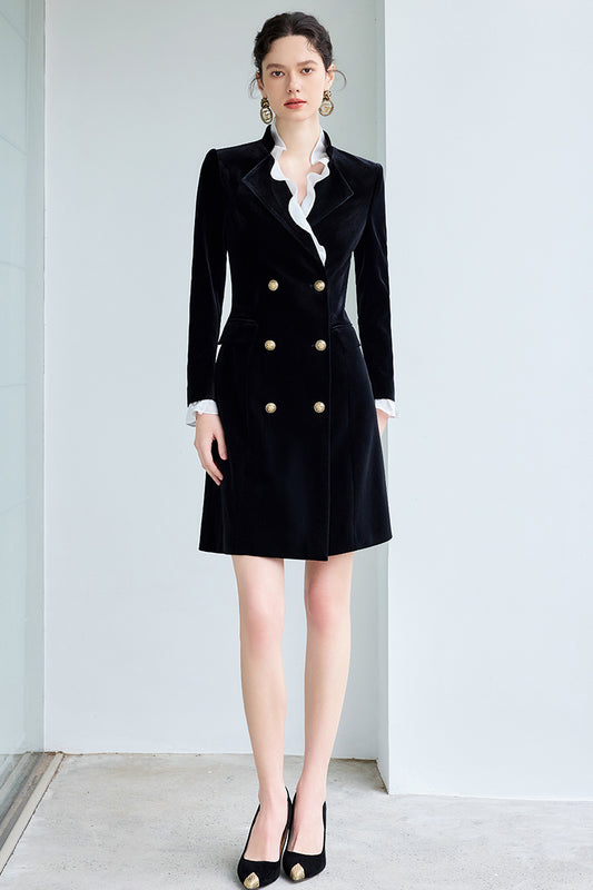 Absolutely in love! This blazer dress is everything I wanted and more. The fit is beyond flattering, and the velvet feels so luxurious. The gold buttons add the perfect touch of elegance. I feel like a total boss in this!